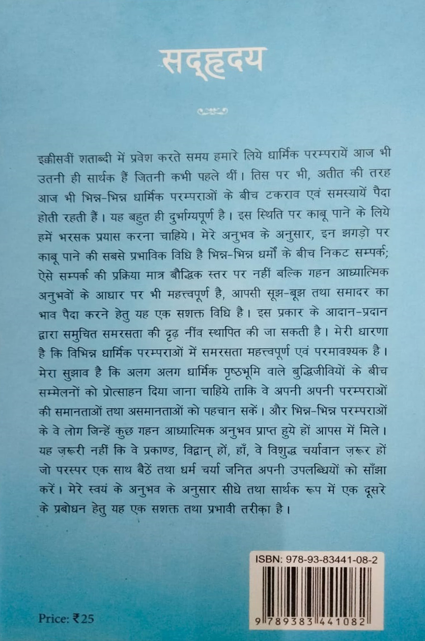 इक्कीसवीं शताब्दी में प्रवेश करते समय हमारे लिये धार्मिक परम्परायें आज भी उतनी ही सार्थक हैं जितनी कभी पहले थीं। तिस पर भी अतीत की तरह आज भी भिन्न-भिन्न धार्मिक परम्पराओं के बीच टकराव एवं समस्यायें पैदा होती रहती हैं। यह बहुत ही दुर्भाग्यपूर्ण है। इस स्थिति पर काबू पाने के लिये हमें भरसक प्रयास करना चाहिये। मेरे अनुभव के अनुसार इन झगड़ो पर काबू पाने की सबसे प्रभाविक विधि है भिन्न-भिन्न धर्मों के बीच निकट सम्पर्क ऐसे सम्पर्क की प्रक्रिया मात्र बौद्धिक स्तर पर नहीं बल्कि गहन आध्यात्मिक अनुभवों के आधार पर भी महत्त्वपूर्ण है आपसी सूझ-बूझ तथा समादर का भाव पैदा करने हेतु यह एक सशक्त विधि है। इस प्रकार के आदान-प्रदान द्वारा समुचित समरसता की दृढ़ नींव स्थापित की जा सकती है। मेरी धारणा है कि विभिन्न धार्मिक परम्पराओं में समरसता महत्त्वपूर्ण एवं परमावश्यक है। मेरा सुझाव है कि अलग अलग धार्मिक पृष्ठभूमि वाले बुद्धिजीवियों के बीच सम्मेलनों को प्रोत्साहन दिया जाना चाहिये ताकि वे अपनी अपनी परम्पराओं की समानताओं तथा असमानताओं को पहचान सकें। और भिन्न-भिन्न परम्पराओं के वे लोग जिन्हें कुछ गहन आध्यात्मिक अनुभव प्राप्त हुये हों आपस में मिले। यह जरूरी नहीं कि वे प्रकाण्ड विद्वान् हों हाँ वे विशुद्ध चर्यावान जरूर हों जो परस्पर एक साथ बैठें तथा धर्म चर्या जनित अपनी उपलब्धियों को साँझा करें। मेरे स्वयं के अनुभव के अनुसार सीधे तथा सार्थक रूप में एक दूसरे के प्रबोधन हेतु यह एक सशक्त तथा प्रभावी तरीका है।