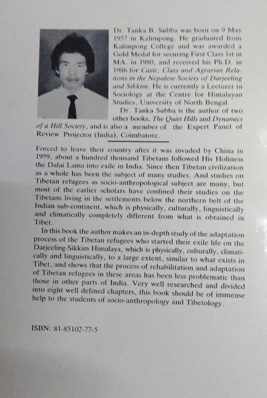 Studies on Tibetan refugees are many but almost all by European scholars. There are mainly three shortcomings in such studies. One they mostly deal with adaptation problems without properly defining this concept or outlining its boundaries. Second most studies published so far have been carried out in areas which are physically culturally and linguistically completely different from what is obtained in Tibet. And third many of such studies have not been able to claim to have overcome the last shortcoming of most earlier scholars the first two have been overcome to a large extent.The Darjeeling-Skkim Himalaya being physically culturally and linguistically to a larg extent simillar to what exits in Tibet the adaptation of the Tibetan refugees there was theoretically expected to be better. But the present study finds that under such circumstances the refugees often tended to cross the boundaries of adaptation and enter into the field of assimilation and where there was no difference of any sort such as in Bhutan there was a situation married by conflict too.This book is based on schedules administered to the heads of 80 households. sampled form three principal concentrations of the Tibetan refugees in the region viz. Kalimpong Gangtok and Ravangla in South Sikkim However the findings there are compared with the findings in other major Tibetan settlments in India Bhutan and Nepal.Such comparisons are not always based on full-fledged studies but on reconstrudctions of stray information and personal knoweledge.The theorctical framework of this book is clearly parsonian with all its limitations and appropariatensess under a refugee situation.This book is divided into eight chapters. The fist is on the concepts theoretical framework and method.The third is mainly on where they are and what kind of Indian and overseas help they are getting. The fourth is an attempt to show how close racial cultural linguistic and religious connections the Tibetans have with their hosts in the region. The fifth deals with their economic adaptation on the basis of occupational change and income distributtion. the sixth is on how the social system of the Tibetan refuges is adapting to the wider social system and how the latter is accommodating the former. The seventh capter makes a comparative analyses of all adapation studies so far published or unpublihsed on these refugees and draw some broad generalizations. The book ends with some futuristic remarks on their culture politics and nationality.