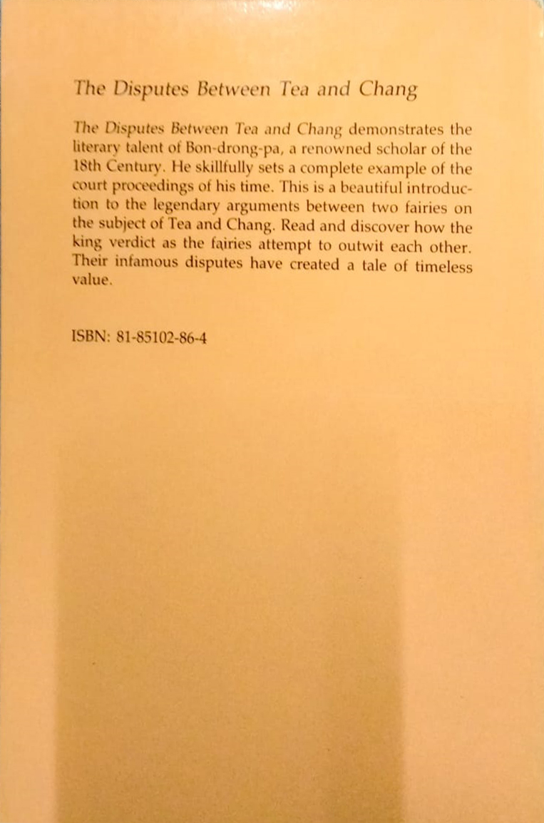 The Disputes Between Tea and Chang demonstrates the Literary talent of Bon-drong-pa renowned scholar of the 18th Century. He skillfully sets a complete example of the court proceedings of his time. This is a beautiful introduction to the legendary arguments between two fairies on the subject of Tea and Chang. Read and discover how the king verdict as the fairies attempt to outwit each other. Their infamous disputes have created a tale of timeless value.
