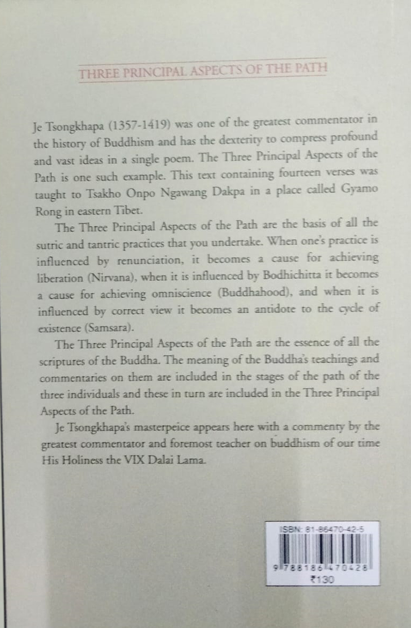 The Three Principal Aspects of the Path are the essence of all the scriptures of the Buddha. The meaning of the Buddha s teachings and commentaries on them are included in the stages of the path of the three individuals and these in turn are included in the Three Principal Aspects of the Path.