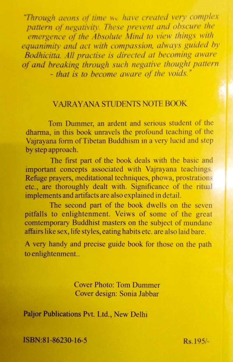 Finally I wish to stress that this is neither a definitive work nor a textbook vis-a-vis the various topics mentioned. It is as the title suggests a note book for lay Vajrayana students rather than learned scholars for whom the appropriate academic tomes are readily available in Tibetan English and many other languages.