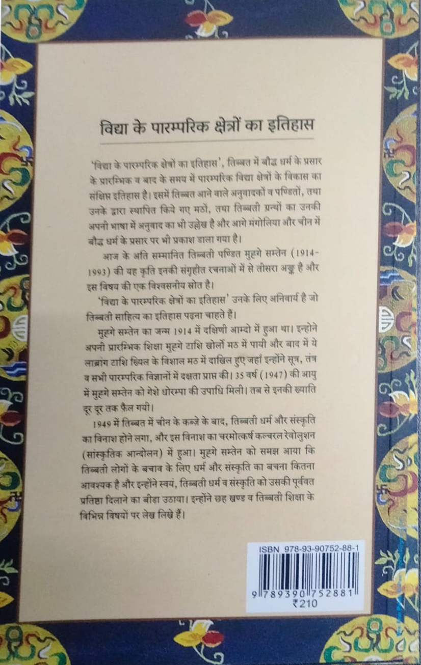 विद्या के पारम्परिक क्षेत्रों का इतिहास तिब्बत में बौद्ध धर्म के प्रसार के प्रारम्भिक व बाद के समय में पारम्परिक विद्या क्षेत्रों के विकास का संक्षिप्त इतिहास है। इसमें तिब्बत आने वाले अनुवादकों व पण्डितों तथा उनके द्वारा स्थापित किये गए मठों तथा तिब्बती ग्रन्थों का उनकी अपनी भाषा में अनुवाद का भी उल्लेख है और आगे मंगोलिया और चीन में बौद्ध धर्म के प्रसार पर भी प्रकाश डाला गया है।