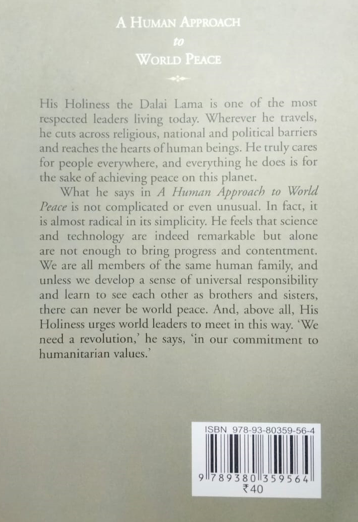What he says in A Human Approach to World Peace is not complicated or even unusual. In fact it is almost radical in its simplicity. He feels that science and technology are indeed remarkable but alone are not enough to bring progress and contentment. We are all members of the same human family and unless we develop a sense of universal responsibility and learn to see each other as brothers and sisters there can never be world peace. And above all His Holiness urges world leaders to meet in this way. We need a revolution he says in our commitment to humanitarian values.