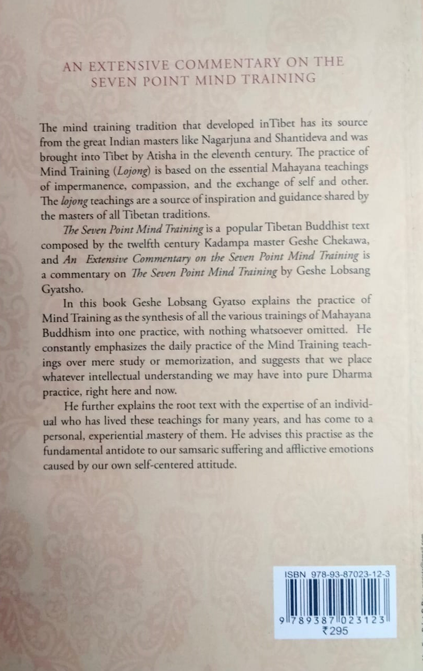 The Seven Point Mind Training is a popular Tibetan Buddhist text composed by the twelfth century Kadampa master Geshe Chekawa and An Extensive Commentary on the Seven Point Mind Training is a commentary on The Seven Point Mind Training by Geshe Lobsang Gyatsho.