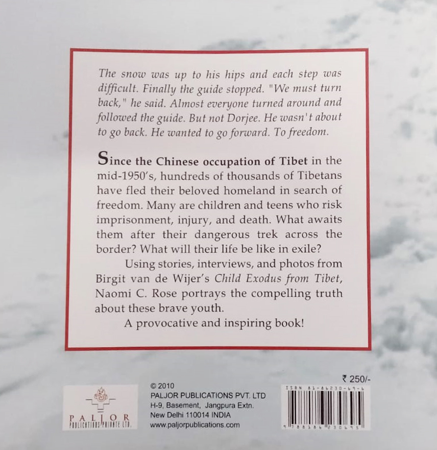 Since the Chinese occupation of Tibet in the mid-1950 hundreds of thousands of Tibetans have fled their beloved homeland in search of freedom. Many are children and teens who risk imprisonment injury and death. What awaits them after their dangerous trek across the border? What will their life be like in exile? Using stories interviews and photos from Birgit van de Wijer’s Child Exodus from Tibet Naomi C. Rose Portrays the compelling truth about these brave youth.