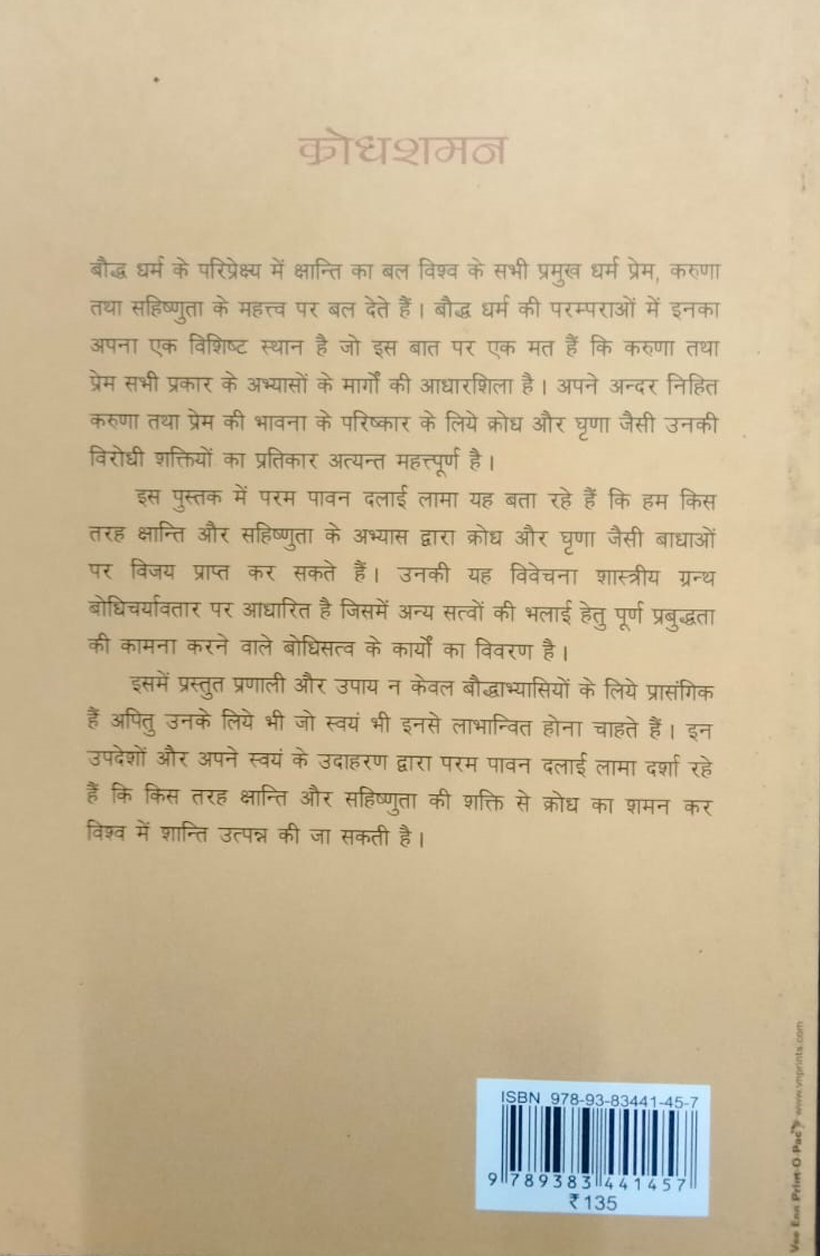 इस पुस्तक में परम पावन दलाई लामा यह बता रहे हैं कि हम किस तरह क्षान्ति और सहिष्णुता के अभ्यास द्वारा क्रोध और घृणा जैसी बाधाओं पर विजय प्राप्त कर सकते हैं। उनकी यह विवेचना शास्त्रीय ग्रन्थ बोधिचर्यावतार पर आधारित है जिसमें अन्य सत्वों की भलाई हेतु पूर्ण प्रबुद्धता की कामना करने वाले बोधिसत्व के कार्यों का विवरण है।