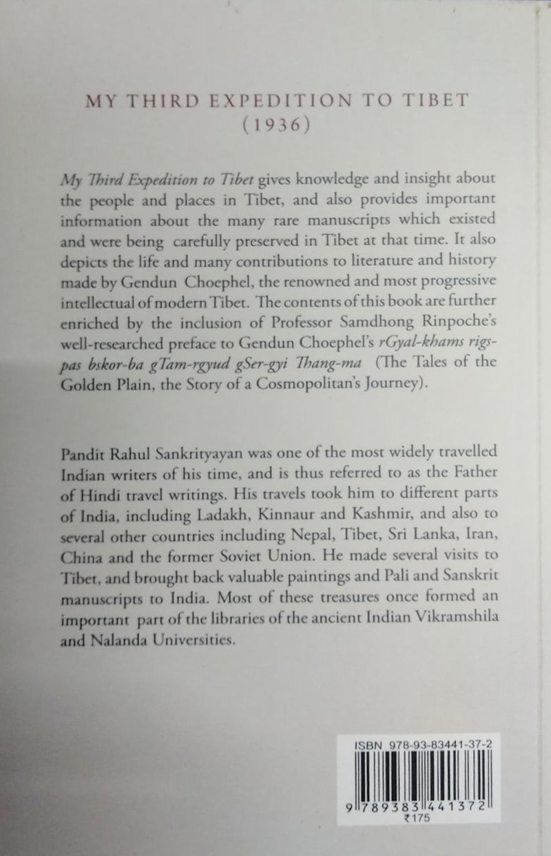 My Third Expedition to Tibet gives knowledge and insight about the people and places in Tibet and also provides important information about the many rare manuscripts which existed and were being carefully preserved in Tibet at that time. It also depicts the life and many contributions to literature and history made by Gemdin Choephel the renowned and most progressive intellectual of modern Tibet. The contents of this book are further enriched by the inclusion of Professor Samdhong Rinpoche s well-researched preface to Gendum Chiephl s rGyal-khams rigspas bsor-ba gTam-rgyud gSer-gyi Thang-ma. ( The Tales of the Golden Plain the Story of a Cosmopolitan sJourney).