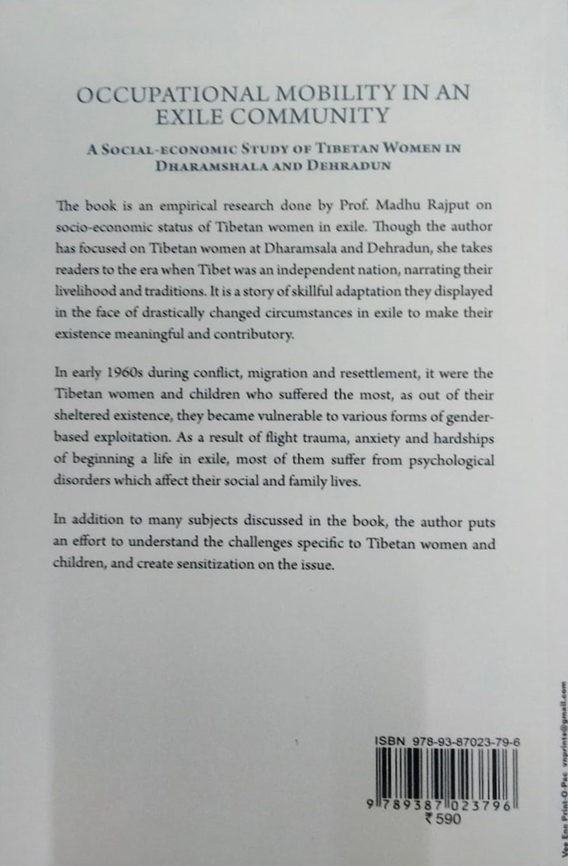 The book is an empirical research done by author on socio-economic status of Tibetan women in exile. In early 1960s during conflict migration and resettlement it were the Tibetan women and children who suffered the most as out of their sheltered existence they became vulnerable to various forms of gender based exploitation.