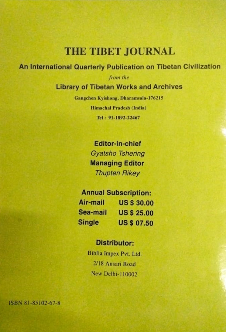 Furthermore I would like to take this opportunity to express my sincere gratitude to Dr. Thom Jefferson founder of the Tibetan Library in Eugene Oregon for his pioneering work for the promotion of Tibetan Studies in Eugene and also for his sympathetic cooperation in bringing out these two booklets and whose exemplary honesty I greatly admire.