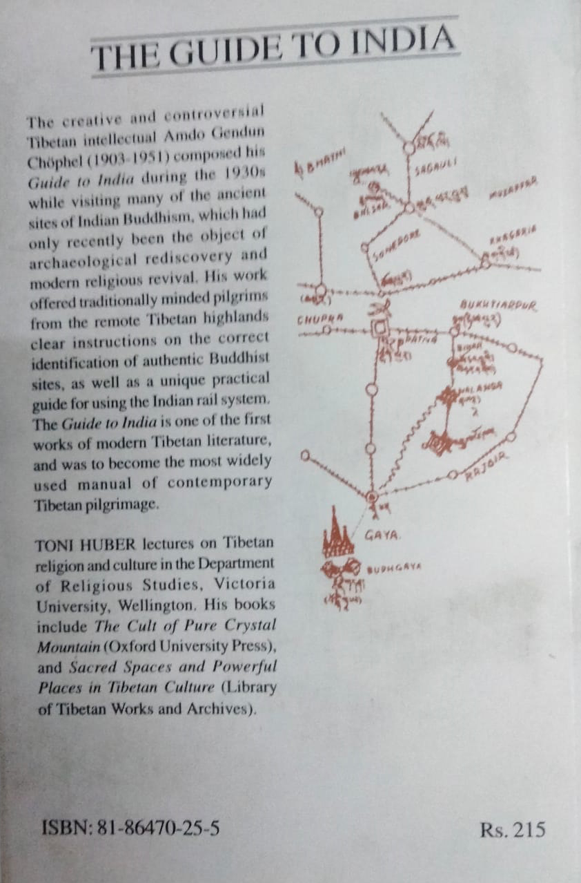 The creative and controversial Tibetan intellectual Amdo Gendun Chophel (1903-1951) composed his guide to India during the 1930 s while visiting many of the ancient sites of Indian Buddhism which had only recently been the object of archaeological rediscovery and modern religious revival.His work offered traditionally minded pilgrims from the remote Tibetan highlands clear instructions on the correct identification of authentic Buddhist sites as well as unique practical guide for using the Indian rail system. The Guide to India is one of the first works of Modern Tibetan Literature and was to become the most used manual contemporary Tibetan pilgrimage.