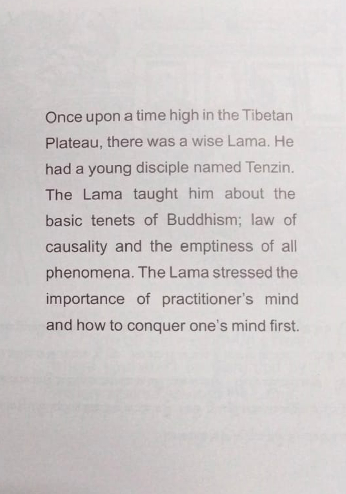 Through this Tibetan tale "training of Mind" we learn the importance of mind training in order to get into real Buddhist practice. The story is among the many folk tales which my mother told me during our childhood. I am truly grateful to my mother who despite those hard early days of exile from Tibet kindly found time to marvel us with the wealth of Tibetan folk tales. I dedicate this book to her for her love and courage and for being a loving mother. Lastly I hope the tale will stir the imagination of children around the world as it stirred mine.