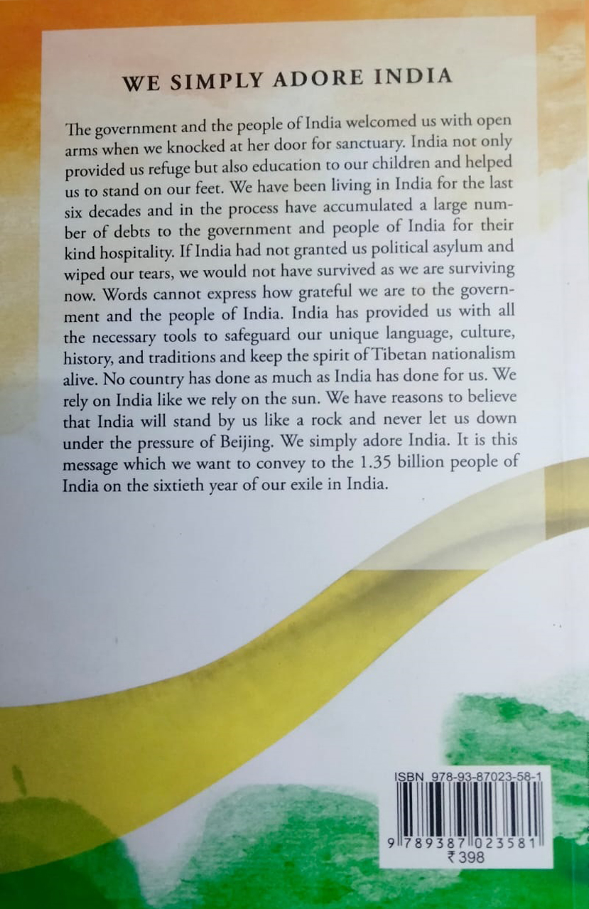 The government and the people of India welcomed us with open arms when we knocked at her door for sanctuary. India not only provided us refuge but also education to our children and helped us to stand on our feet. We have been living in India for the last six decades and in the process have accumulated a large number of debts to the government and people of India for their kind hospitality. If India had not granted us political asylum and wiped our tears we would not have survived as we are surviving now. Words cannot express how grateful we are to the government and the people of India. India has provided us with all the necessary tools to safeguard our unique language culture history and traditions and keep the spirit of Tibetan nationalism alive. No country has done as much as India has done for us. We rely on India like we rely on the sun. We have reasons to believe that India will stand by us like a rock and never let us down under the pressure of Beijing. We simply adore India. It is this message which we want to convey to the 1.35 billion people of India on the sixtieth year of our exile in India.